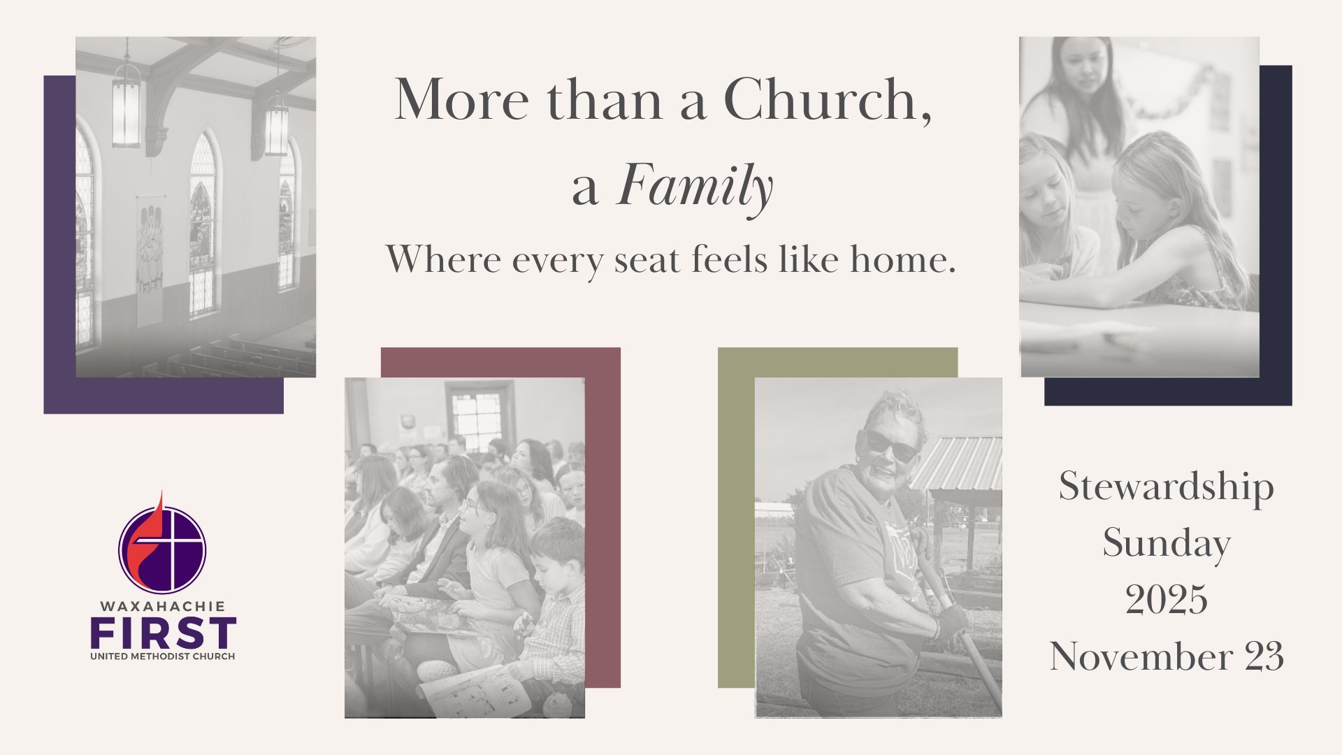 In November, Pastors Adam and Val reflect on what makes FUMC more than just a church, but a family - where every seat feels like home. This series transitions us into Stewardship season so that we can remember why we give and how our stewardship is an integral part of our faith.