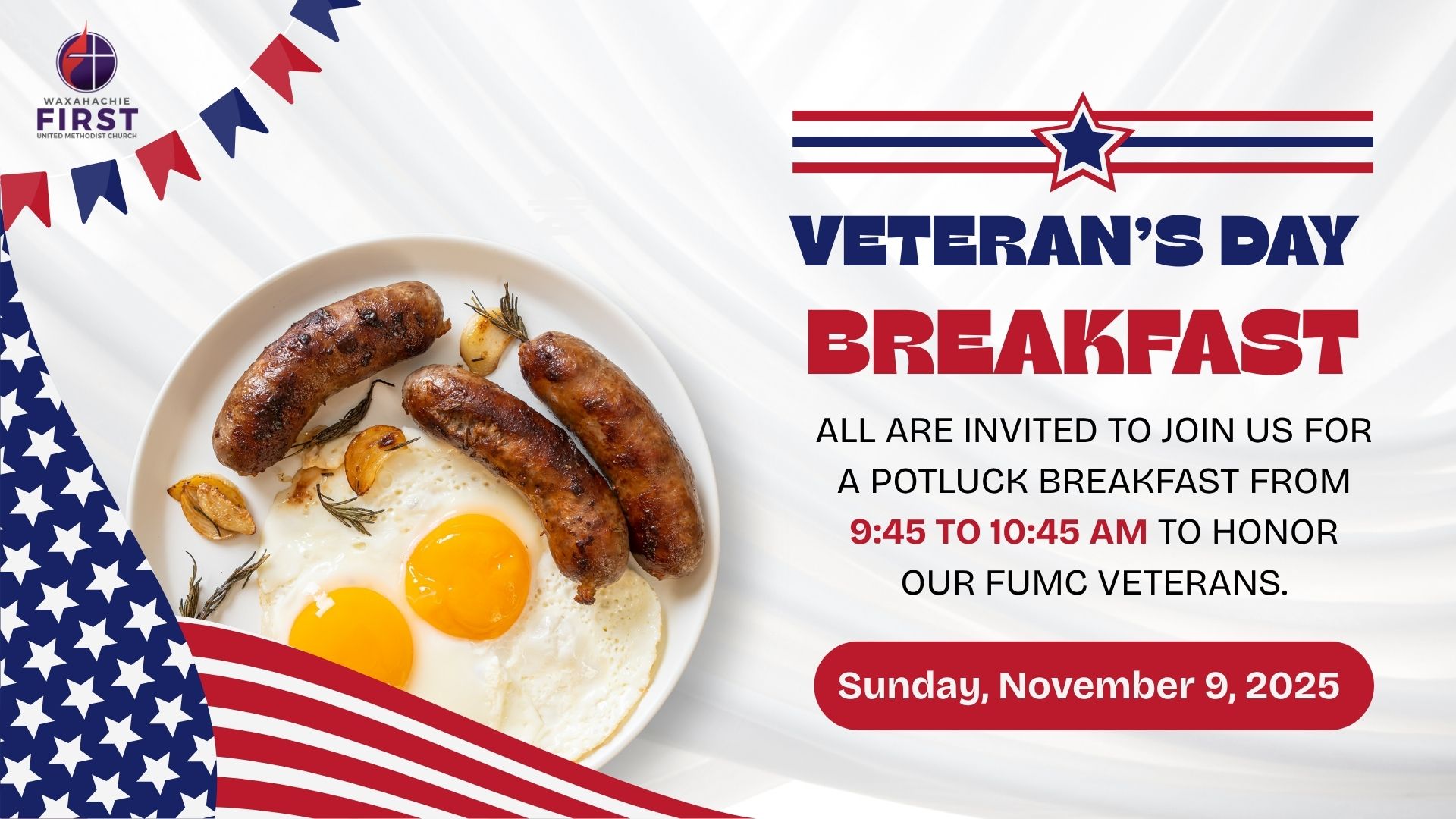 All are invited to join us for a potluck breakfast from 9:45 to 10:45 am to honor our FUMC Veterans.