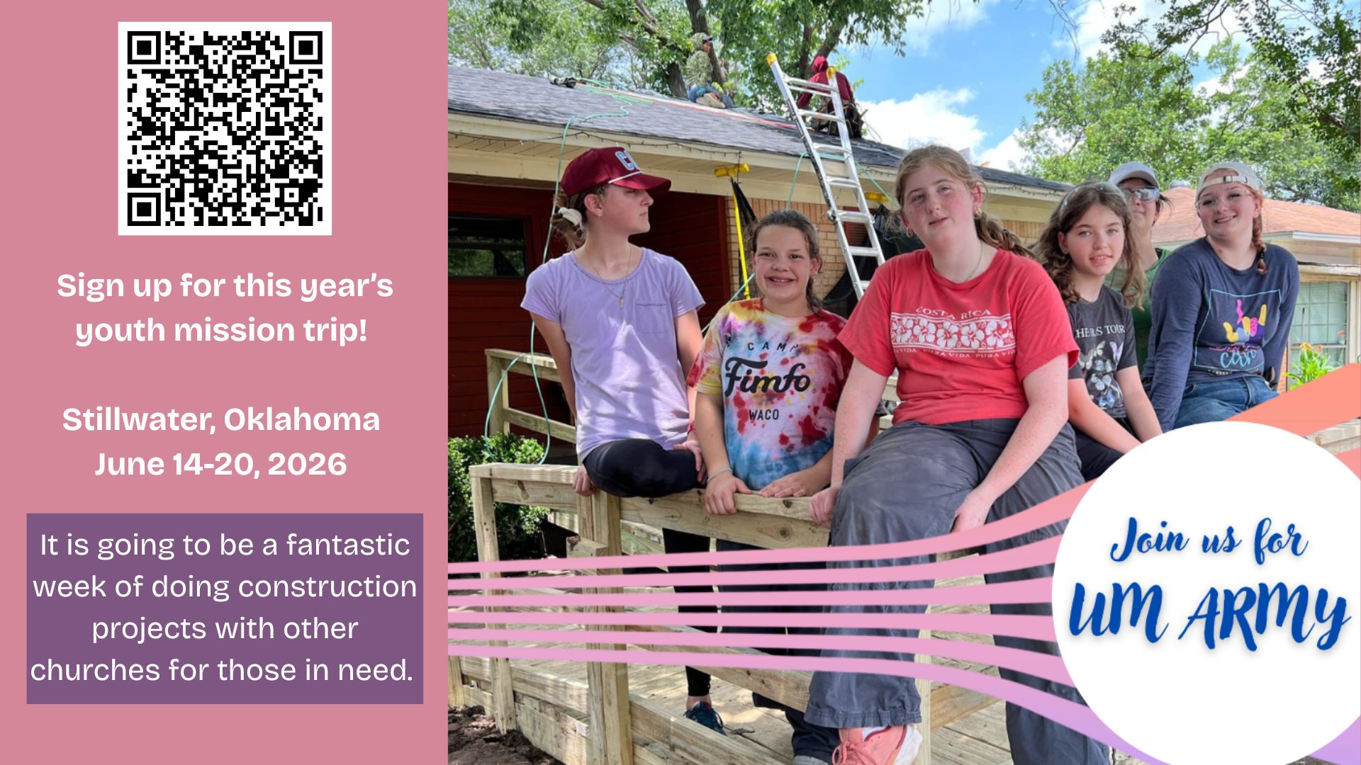 Sign up for UM ARMY! We are going to Stillwater, OK. June 14-20. It is going to be a fantastic week of doing free construction projects with other churches for those in need. If you have any questions, just reach out to Seth! Sign-up link is below.