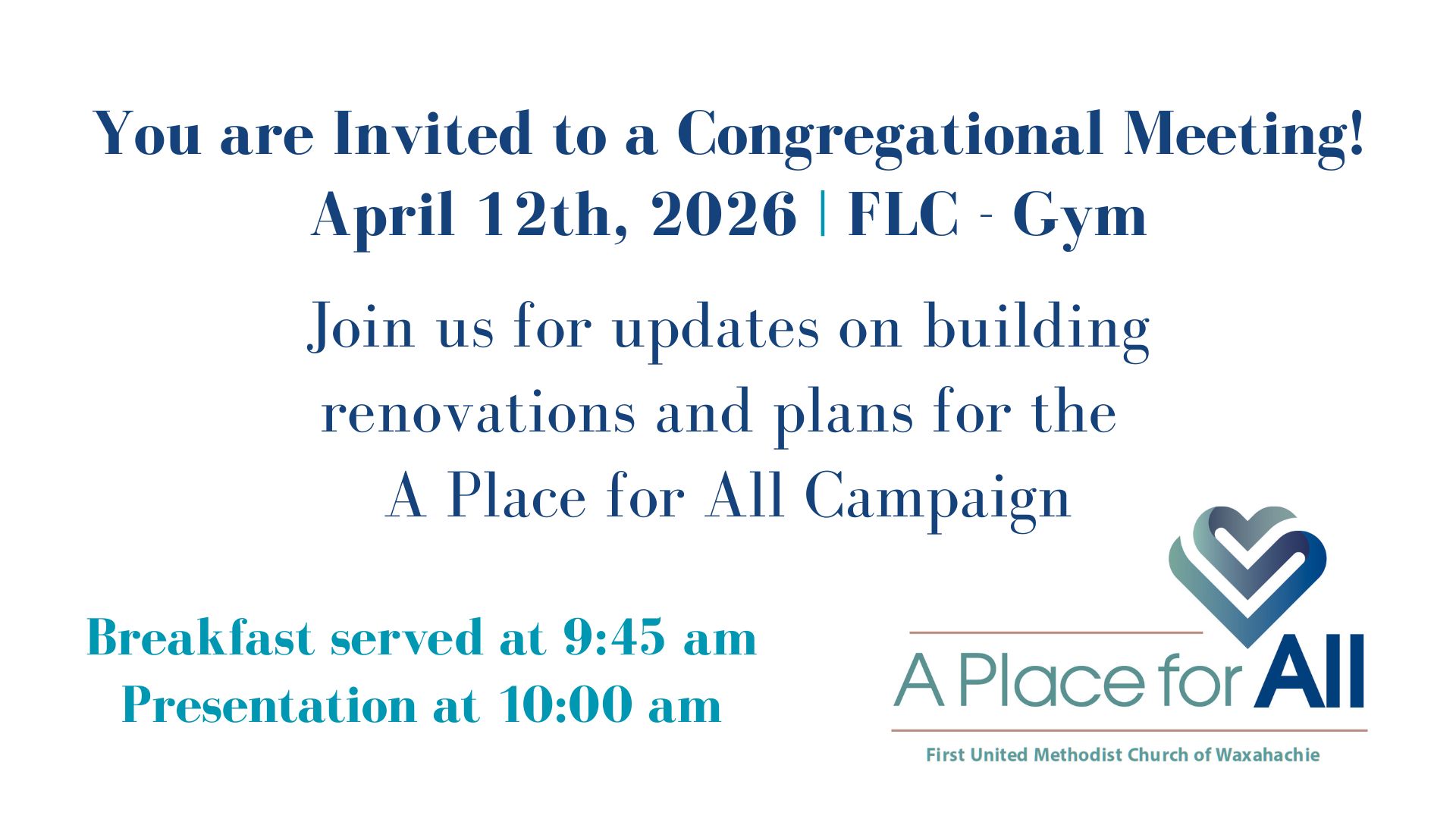 It may not seem like much has happened since the elevator was installed, but the A Place for All team has been working hard behind the scenes, getting ready for the next phase of construction. Come hear the update on April 12th during the Sunday school hour! Breakfast is provided!