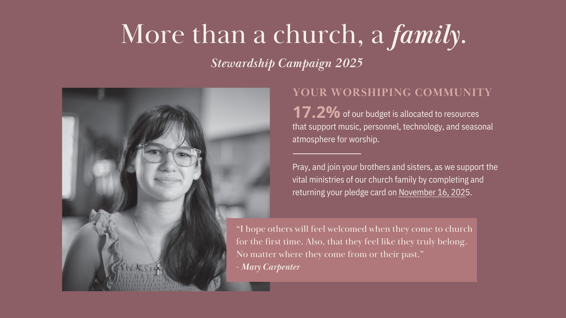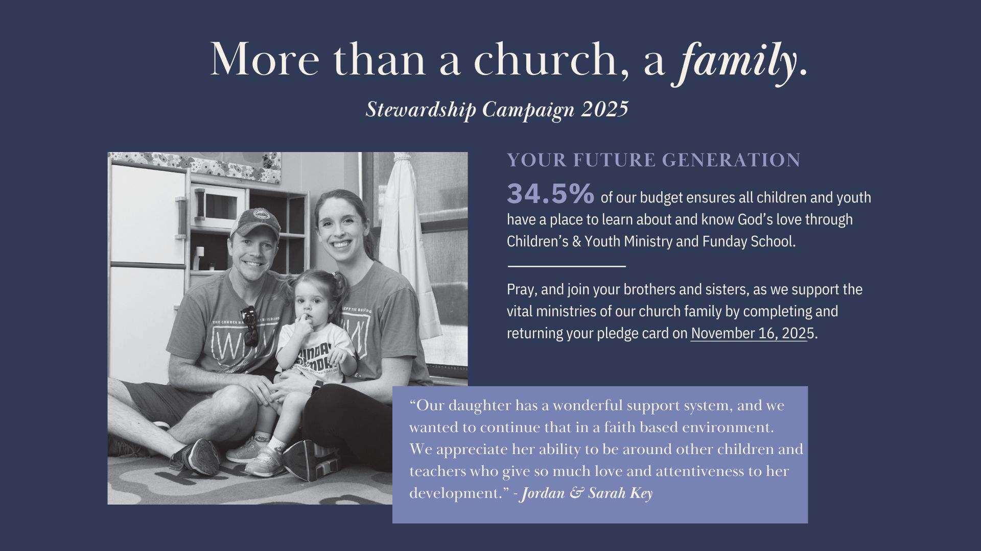 This year, I pray we can give, not with a sense of obligation, but with a spirit of excitement for the new chapter God invites us to write together. With God’s help, may we commit to serve in this wonderful community and have a little fun doing it together as a church family.